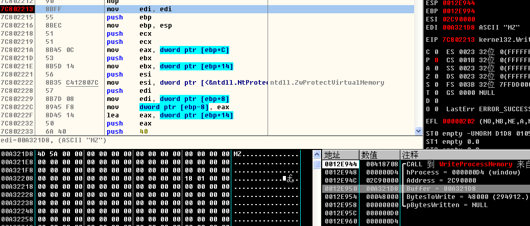 第二次执行主要枚举进程,找到符合条件的进程,注入到系统explorer进程 大小0×48000