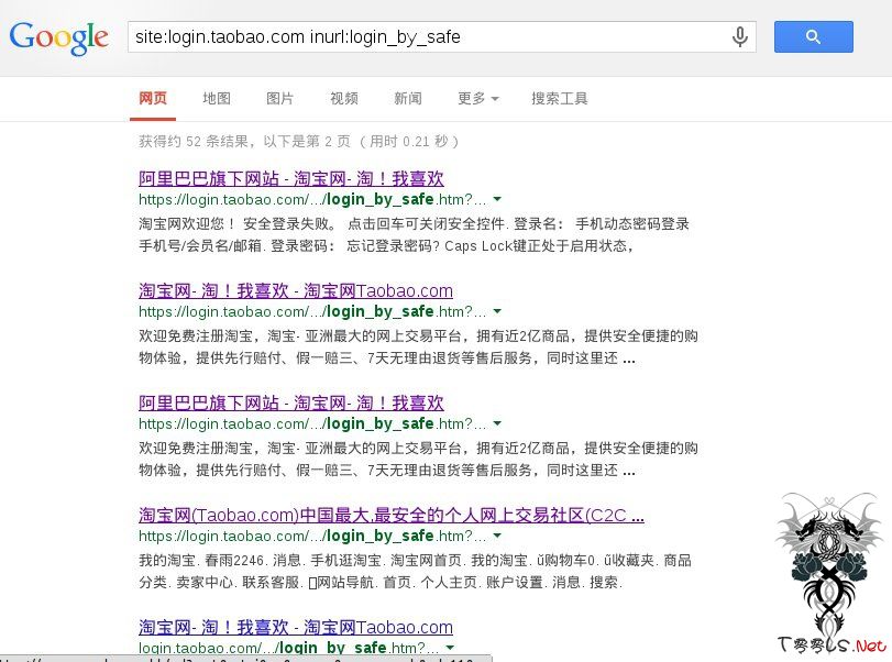邮件内容只有一句话:site:http://login.taobao.com inurl:login_by_safe, about wy. L