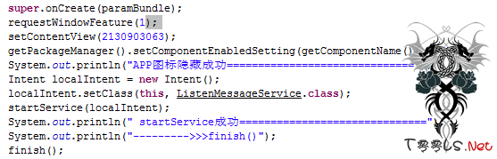 1.在入口Activity—–MainActivity中木马执行了隐藏图标的功能,随后打开了一个ListenMessageService的服务,在后台运行。