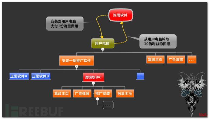 流氓软件的本质,一方面体现在其流氓推广方式上,往往是隐蔽、强制和暴力的;另一方面流氓软件很大程度上是个空壳软件,并没有为用户带来应有价值,带来的是系统资源浪费和各种频繁骚扰;最不容忽视的一点是其往往暗藏病毒木马,在利益追求的引导下,推广者想尽办法通过一台电脑的安装流量榨取十份的推广回报,用户电脑最终只能沦为赚取推广费用的傀儡,甚至最后被装上各类木马病毒,严重影响用户系统安全。