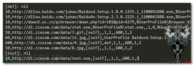 1)访问http://i1.d8ht.com:8080/GetLog.html获取配置信息,共26条有效数据,可以推测出此变种目前最少有26个流量渠道进行推广,格式如下: