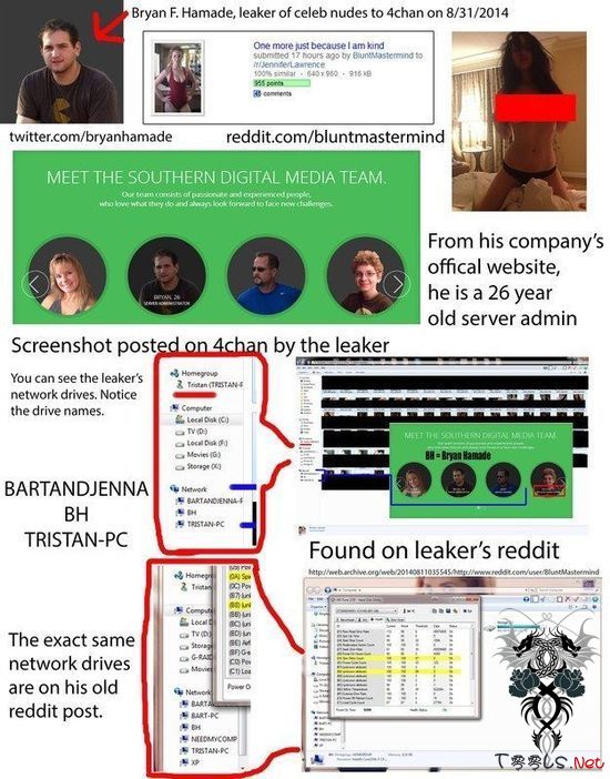 《每日邮报》称,这些私密照片一周前便在暗网(Deep Web,互联网上那些不能被标准搜索引擎索引的非表面网络)间流传,只是最近才被公开泄露出来,很可能布莱恩·哈马德只是扮演了将照片从暗网到明网的“搬运工”角色。