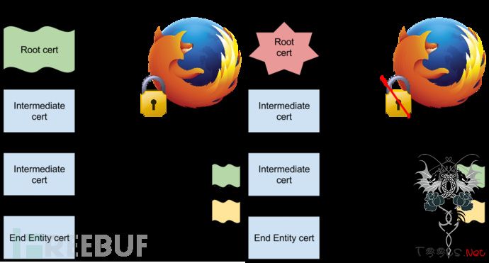 2011年,攻击者窃取了荷兰证书认证机构(CA)DigiNotar的证书并私自颁发了众多知名网站的证书,包括Google, Yahoo和Mozilla基金会的证书。