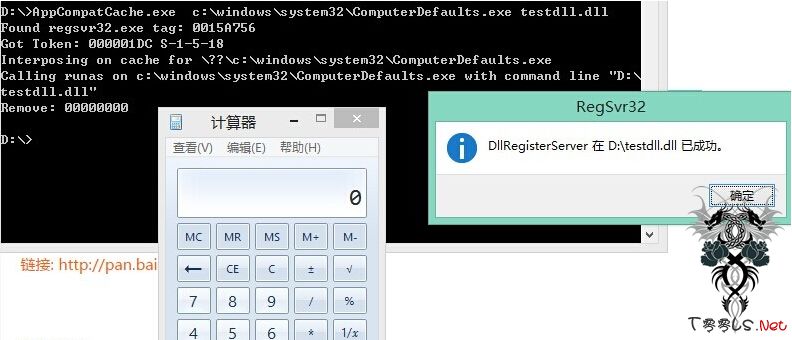 3)在命令行下运行AppCompatCache.exe c:\windows\system32\ComputerDefaults.exe testdll.dll