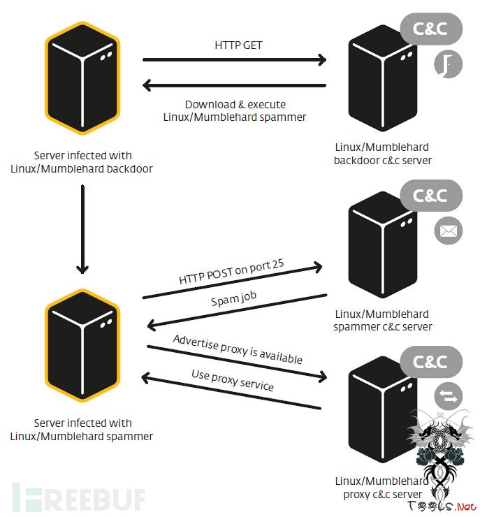 近期ESET专家发现一种新型恶意软件Mumblehard,该恶意软件至少秘密存在了五年,感染了数千的Linux和FreeBSD服务器,并利用这些服务器投送垃圾邮件。