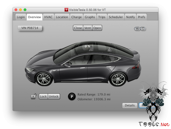 车主Joe Pasqua是一名来自NoSQL数据库与应用开发企业MarkLogic的高管,出于个人兴趣,破解了特斯拉官方应用程序和服务器的协议,还打造了一款名为Visible Tesla的免费应用(下图)。通过这款应用,Model S车主可以进行更多个性化设置,比如空调开关、门窗开关、温度改变、控制充电等等。