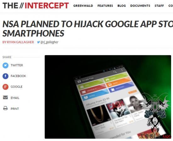根据从斯诺登获得的文件,所谓五眼情报联盟——成员包括加拿大、美国、英国,澳大利亚和新西兰的间谍小组,专门发掘各种途径寻找和劫持连接到由谷歌和三星应用商店服务器的数据链接。