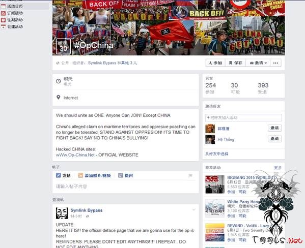 随着南海事态的不断升级,越南、菲律宾两国的互联网、军事评论员等精英按耐不住,通过各大媒体、 Facebook、Twitter等社交媒体连续发出“南海主权”等多篇文章煽动两国人民对中国政府的仇恨;2015年5月下旬,菲越两国黑客联合行动,拟打算在本月5月30日中午12点针对中国政府、教育、企业等网络展开DDOS以及网页篡改的黑客攻击,近日不断通过网络大量发布招募世界各国黑客,行动代号“Op China"