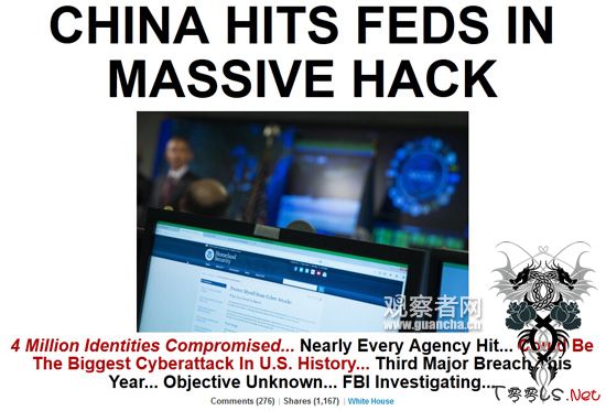 美媒:美政府遭中国黑客入侵 四百万雇员资料外泄