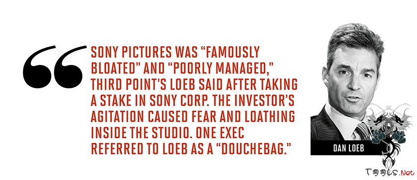 “索尼影业机构臃肿,缺乏管理。” 来自拥有索尼股票Third Point公司的丹·勒布如是说到,“投资者的信心会受到恐吓,工作室内部令人厌恶。”一名行政人员指责勒布简直是一个“人渣”。