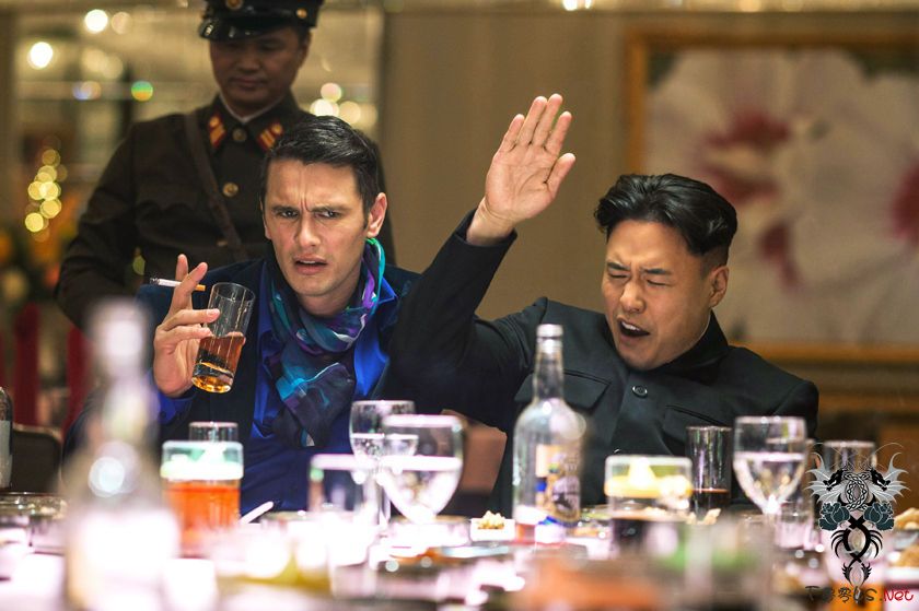 图译:《刺杀金正恩》中的一个场景,右边是影片塑造的金正恩形象。