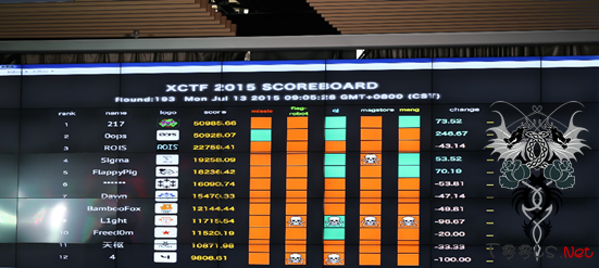 XCTF联赛总决赛是XCTF联赛2014-2015首个赛季的最终决战,参加终极对决的十二支队伍包括由腾讯赞助、今年首次闯入DEFCON CTF全球总决赛的上海交大0ops战队,去年DEFCON CTF总决赛亚军台湾大学217战队,以及成都站选拔赛SCTF冠军队L1ght战队、杭州(浙大)站选拔赛ACTF冠军队复旦大学六星战队、杭州(杭电)站选拔赛HCTF季军队Sigma战队等著名战队。