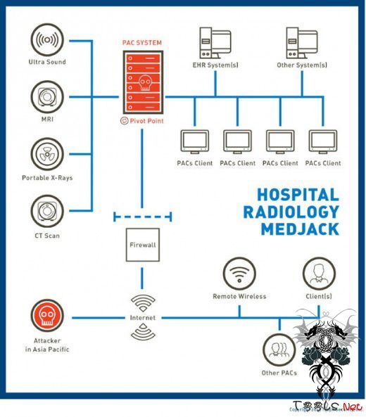 TrapX还发现,他们调查的三家独立医院,各种医疗设备存在很多安全漏洞,包括X射线设备,图像存档和通信系统(PACS)、血气分析仪(BGA)。但还是有很多设备对MEDJACK有免疫功能,包括诊断设备(PET扫描仪,CT扫描仪,核磁共振成像仪等),治疗设备(输液泵,医疗激光器和LASIK手术设备),和生命支持设备(心脏 肺机,医用呼吸机,体外膜肺氧合机透析机)等等。