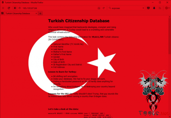 另外,黑客还在这次攻击中似乎还要给人们“上上课”。首先,轻微的数据转移并未加密,暗指民众的个人数据并未得到好的保护;第二个是“将你们的数据库编入索引。我们必须修复你们草率的DB工作。”未将数据编入索引意味着编程技能的低下;传达政治信息,一个给土耳其:对埃尔多安做点什么!他正把国家摧毁得面目全非,另一个给美国:别选特朗普,这家伙听起来比埃尔多安还烂。