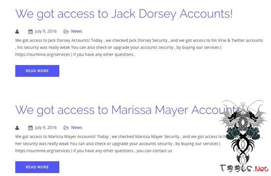 除了上述服务,OurMine 的网站上还开辟出一个专门的板块来发布一些重点账号被黑的消息,显得非常高调。那么,既然 OurMine 的目标是为了提醒安全,那么为什么不私下通知那些被黑的账户呢?