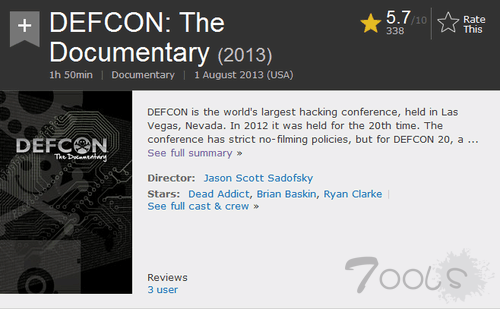 拉风的Jeff Moss甚至还拍过电影,他在一部2012年上映的黑客纪录片《Code 2600》中扮演了自己。在2013年,Jeff Moss作为执行制片人还拍摄了DEF CON的纪录片,虽然评分有点小尴尬,5.7分。