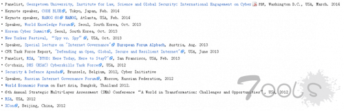 除此之外,Jeff Moss还一直蹦哒到各大论坛和会议,作为主旨演讲嘉宾或者小组发言嘉宾,近几年他的不完全行程统计如下图所示。