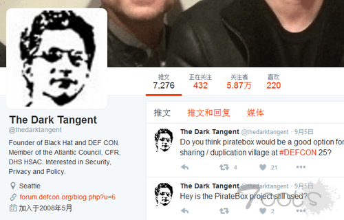 Jeff Moss最近一次在媒体上露面应该要算今年8月31日首届在北京举行的黑客大赛XPwn 了。就像大家吃个午饭都要晒一晒,他还在推特上发表了参加这一会议的感想。