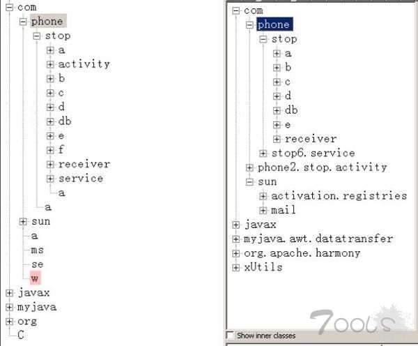 “短信拦截马”病毒为了防止安全人员逆向分析研究,将代码进行混淆,但是包内文件结构一致,内容也很类似。