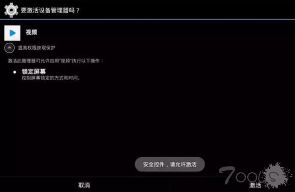 木马运行后为了获取设备管理器权限,会在启动界面上提示用户“提高权限获取保护”等词语诱导用户激活设备管理器权限,用户一旦激活此权限,木马病毒便会隐藏自身图标,很难被卸载。如果用户选择取消激活设备管理器,木马病毒则会弹出警告: “谨慎操作!取消激活可能会影响手机正常使用”等字语威胁用户。