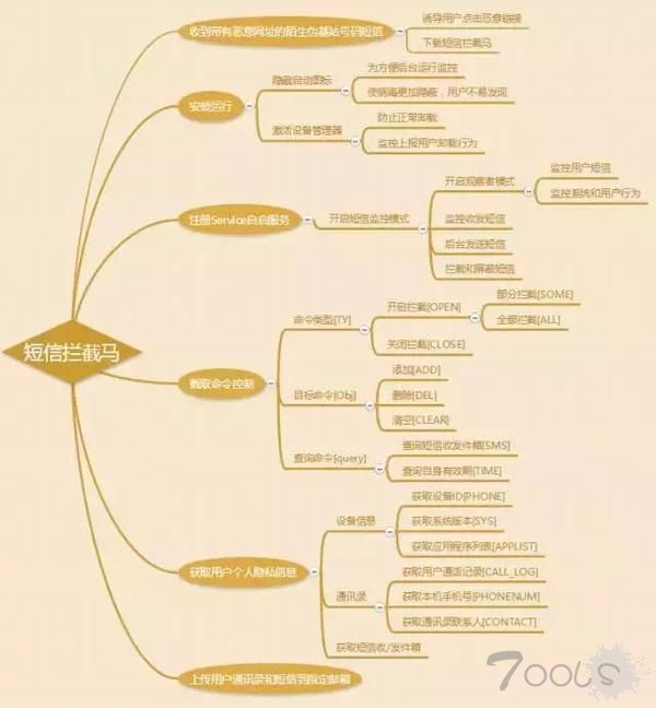 短信拦截马:顾名思义就是一种可以拦截到他人短信的木马,可以控制拦截用户手机中收到的短信,让用户无法实时收到短信,并将用户手机中的短信内容私自发送到攻击者的手机和邮箱中。