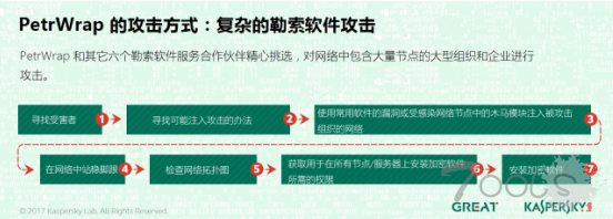 在PetrWrap实施的勒索软件攻击中,他们也使用了独特的工具。这个攻击组织主要针对拥有大量网络节点的企业进行攻击。网络罪犯会为每次攻击都仔细挑选目标,攻击可以持续很长时间:例如,PetrWrap曾经在一个网络内潜伏了超过6个月。
