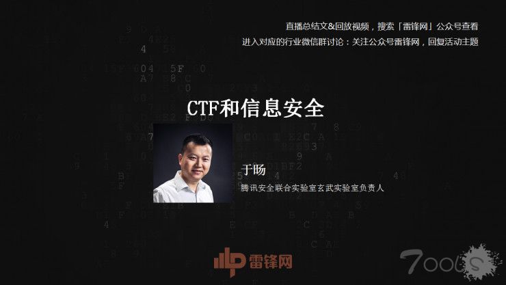 这次,雷锋网宅客频道邀请到了国际顶尖白帽黑客、腾讯安全联合实验室旗下玄武实验室负责人,在国内黑客界被尊称为“TK 教主”的于旸与腾讯安全联合实验室旗下科恩实验室安全研究员腾讯 eee 战队队长谢天忆主讲这次公开课,聚焦 CTF的历史和信息安全人才培养,以及前不久举办的腾讯信息安全争霸赛(TCTF)线上预赛试题解读等内容。