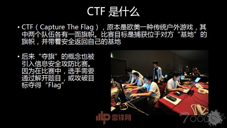 现在,我们用CTF来代指信息安全领域的夺旗比赛。