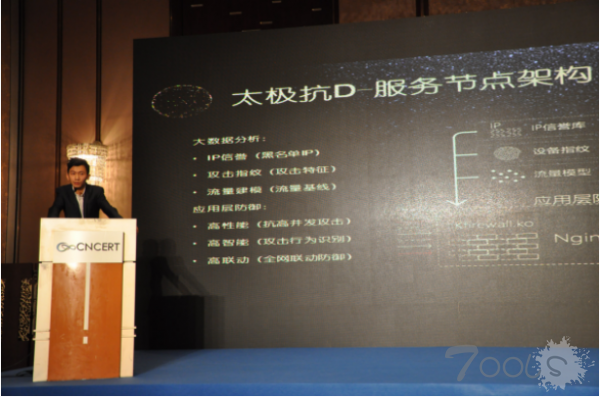 本次网络年会之中将举办第7届支撑单位选拔工作,值得一提的是上海云盾参加了此次评选活动,并取得了不俗表现。在本次活动中上海云盾作为参展企业,以“D匠心-DDOS/CC攻防对抗”为内容发表了演讲,就近年来网络攻击进化进行了详细分析,提出当前业内关于DDOS防御解决方案,并以CC实战经验分享给与会人士,重点描述本企业太极抗D技术的防御技术理念,赢得了在场专业人员的一致好评。