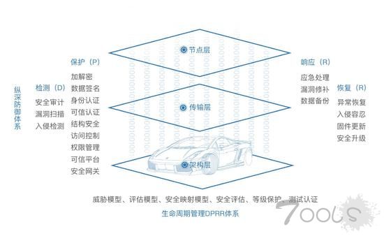 在方法论指导下,构建多域分层入侵检测和主动防护信息安全模型,加强车车-车云协同的攻击防御和无线通信安全防护机制,建立基于不同安全等级的应急响应和恢复策略,实现面向新型电子电气架构演进的软硬件集成防护系统。
