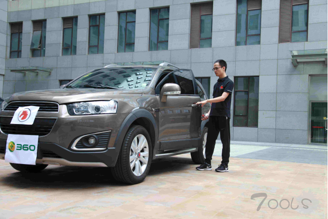 研究人员将360公司一名员工的某品牌棕色汽车停靠在路边,车主下车后锁好车门,把车钥匙放在口袋里,然后离开汽车,此时距离车辆已经有数十米。
