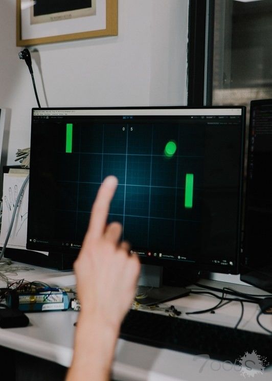 通过手机屏幕,你可以看到这是一个相当熟练的玩家在玩 Asteroids,极小的飞船灵巧的避开大的石块,然后绕着石块旋转,直到将它们都击成小的像素。但我几乎无法看到 Kaifosh 控制游戏的举动:有的只是手掌平放在桌面上时,手指轻微的悸动。似乎他仅仅通过大脑控制就能玩游戏。不过,事实上也差不多就是这样。