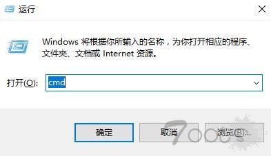 ①按“Win+R”快捷键,打开“运行”对话框,在“打开”下拉列表框中输入“cmd”,单击“确定”按钮,如图2所示: