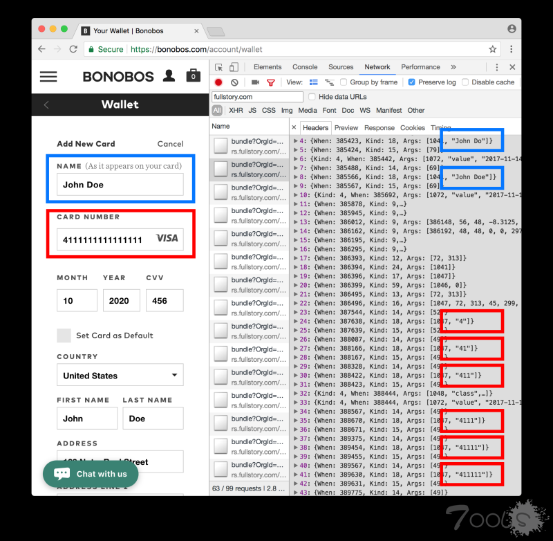 2.敏感的用户输入以局部和不完美的方式进行编辑。当用户与一个站点进行交互时,他们将在创建账户期间提供敏感数据,同时进行购买,或者搜索站点。会话记录脚本可以使用击键或输入元素记录器来收集这些数据。