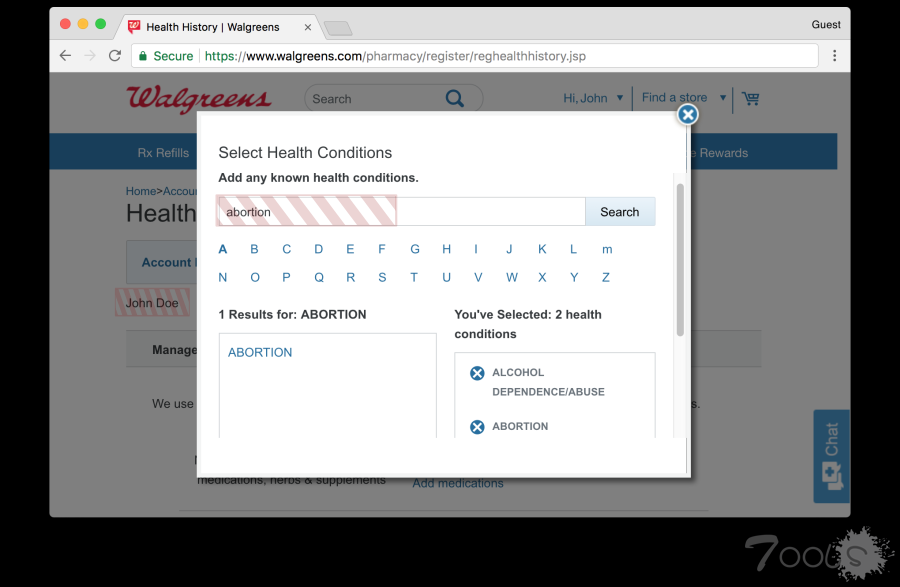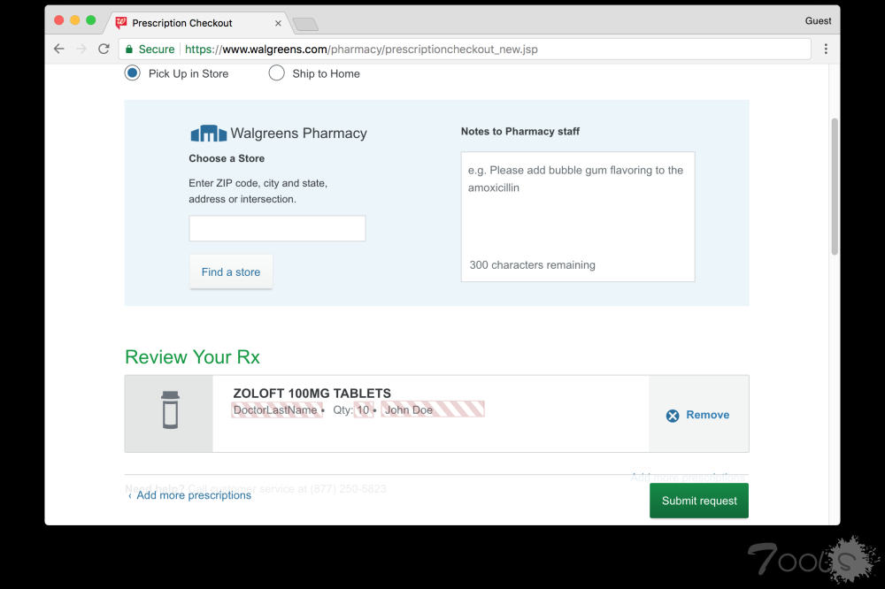 作为一个案例研究,我们来看看嵌入FullStory的Walgreens.com的药房部分。 沃尔格林在显示和输入数据上大量使用手动编辑。 尽管如此,我们发现包括医疗条件和处方在内的敏感信息与用户的姓名一起被泄漏到FullStory。