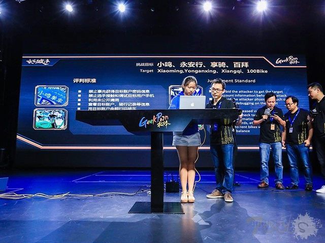 其实早在今年5月的2017国际安全极客大赛GeekPwn年中赛,小鸣、永安行、享骑和百拜四款共享单车的app就曾被女程序员“tyy”轻松破解,展示了共享单车可能存在的巨大安全隐患。当时,tyy入侵了评委手机上预装的上述共享单车app,包括历史骑行路径、骑行时间、GPS定位、账户余额和注册账户信息等都被她轻松掌握。