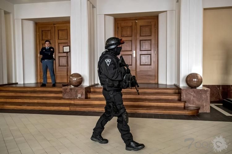 11 月,对俄罗斯黑客耶维格尼·A·尼库林的审判开始前,布拉格法庭外的一名狱警。图片版权:Martin Divisek/European Pressphoto Agency