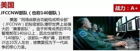 1、美国:当今世界的互联网以及web技术是由硅谷发端的,这个毋庸置疑,美国在互联网基础建设和基础科学方面,远胜其他国家。就黑客武器而言,美军已开发出"蠕虫"病毒、逻辑炸弹等2000多种"网空"作战武器,技术力量为强悍。近期爆发的传染全球的勒索病毒,只不过是美国NSA流出的一小部分黑客工具而已,可见美国技术力量之强。