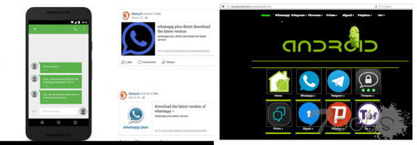 在恶意软件制作成功之后,攻击者利用社交工程技术欺骗受害者安装恶意软件,比如使用 SMS、Facebook 消息或 Facebook 帖子,诱骗受害用户通过特定网址下载新版流行的应用程序,目前这些木马化的应用程序都被托管在同一个 URL 上。