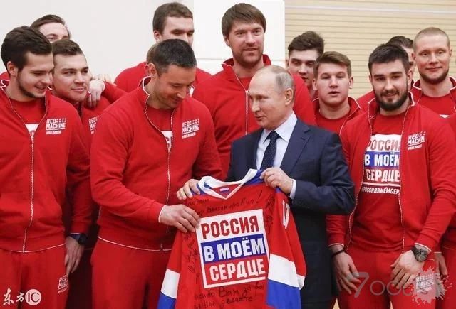 冰球队赠送普京印有“祖国在我心”球衣