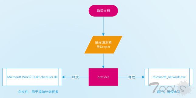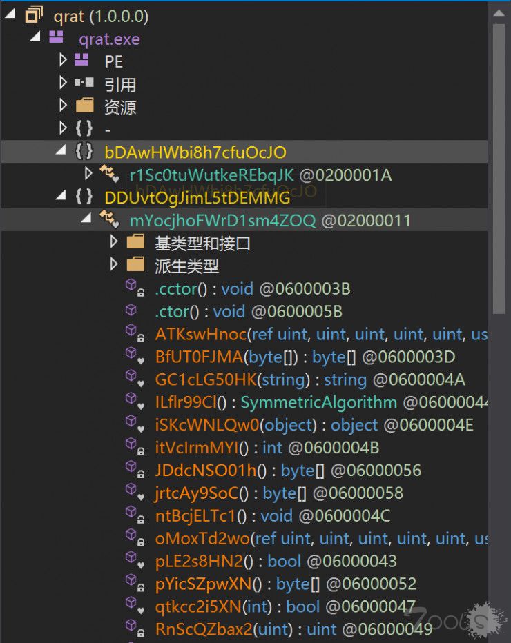 a. Word文档被打开后,会通过触发漏洞释放并运行qrat.exe,样本为C#开发,并做了混淆以防止被分析。