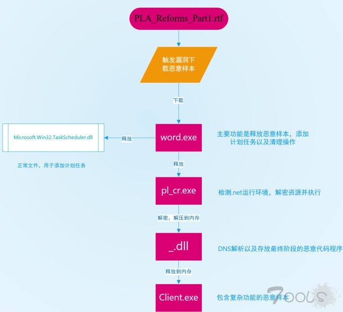 此次,白象利用诱饵文档,通过 Office 漏洞向受害主机植入木马后门,相关程序与该团伙此前使用的木马结构功能基本一致,可根据远程控制服务器发送的指令完全控制受害主机。此次攻击活动系通过钓鱼邮件对特定单位和个人发起,且攻击活动仍在继续。