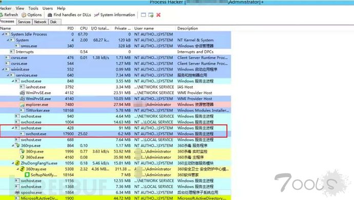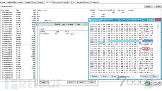 另外,黑客深知普通挖矿程序可以被杀毒软件查杀出来。为了避免被杀,黑客对挖矿程序进行了特殊加密,并将解密后的挖矿代码注入到系统进程中(如上图仅仅只在内存中,安全团队才能观察到挖矿字符特征)。通常来说,杀软不敢轻易对系统进程下手,病毒因此有了免死金牌!