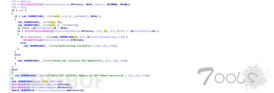 3) 然后,将解密后的wvms_dp.inf数据(即挖矿二进制模块)注入到新启动的svchost.exe进程里面。