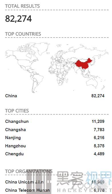 由于Netlab在警告中提到,大部分易受攻击的设备都集中在我国。Beaumont也集中精力将搜索范围集中在了我国,Shodan的扫描结果证实,共计有超过8万台易受攻击的设备都位于我国。