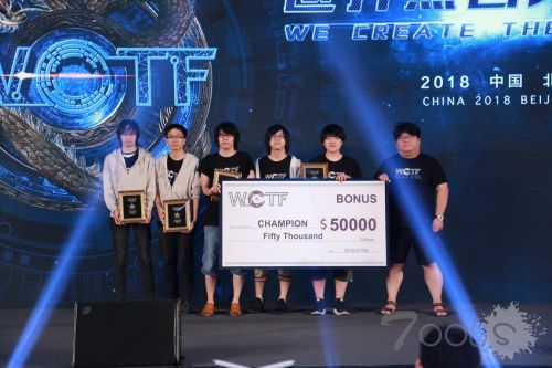 经过一天的精彩分享,裁判们依次为战队们打出了分数。最终,日本战队TokyoWesterns以1276分的最后得分荣获本次WCTF大师赛总冠军并获得5万美金大奖。
