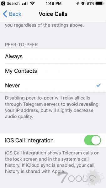 Telegram 应用确实表明过用户可以通过改变设置防止 IP 地址被泄露,操作入下:设置-私人与安全-语音电话-将 Peer-to-Peer 改成 Never 或 Nobody 。这样设置后,用户将需要通过 Telegram 服务器拨打语音电话,虽然隐藏了 IP 地址但却要付出音频质量下降的代价。