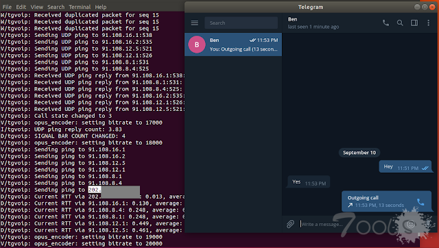 问题是虽然 iOS 和 Android 用户可以关掉 P2P 电话功能,但安全研究员 Dhiraj 发现,官方桌面版和 Windows 版都无法禁用这个功能。这意味着这部分用户的 IP 地址会在他们使用语音通话时遭到泄露。下面是 Ubuntu 桌面版 Telegram 的一个例子: