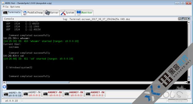 DanderSpritz完全由插件组成,用于收集情报、利用漏洞,以及检查已经被控制的主机。它是采用Java编写的,提供了类似于僵尸网络管理面板的图形窗口界面以及类似于Metasploit的控制台界面。另外,它也包含自己的后门和插件,用于非FuzzBunch控制的受害者。
